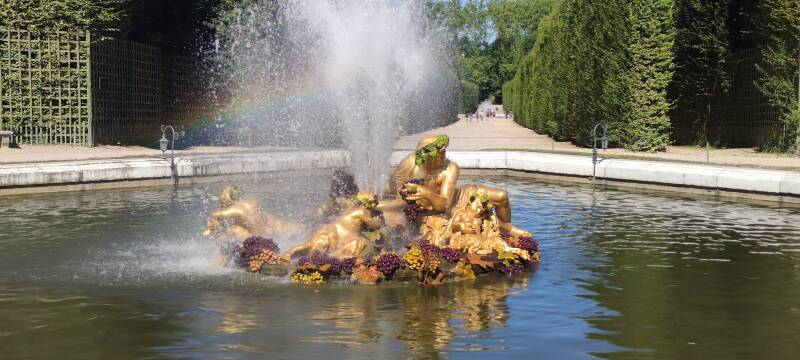 Tranquillement, après manger, on regagna le Domaine du Château et fîmes le tour de ces derniers découvrant l'autre moitié du grand sentier des jardins musicaux dans lesquels nous avions coupés court en fin de matinée pour profiter des bienfaits du déjeuner puis on s'arrêta près d'un bassin nommé le Bassin de Nepture pour un spectacle musical en attendant les feux d'artifices. Nos pieds étaient reposés mais nous ne voulions pas les endommager non plus. Lorsque la nuit commençait à tomber et que les employés commencèrent à rassembler tous les visiteurs sur l'allée centrale du Château, nous prîmes également ce chemin...